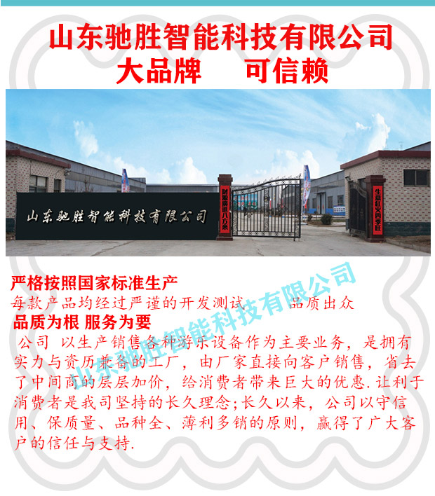 山東馳勝智能科技集團有限公司秉承“向遠方,容世界,敢為先,造歡樂”的經(jīng)營理念-追求和打造景區(qū)游樂場四季休閑游樂品牌作為發(fā)展目標